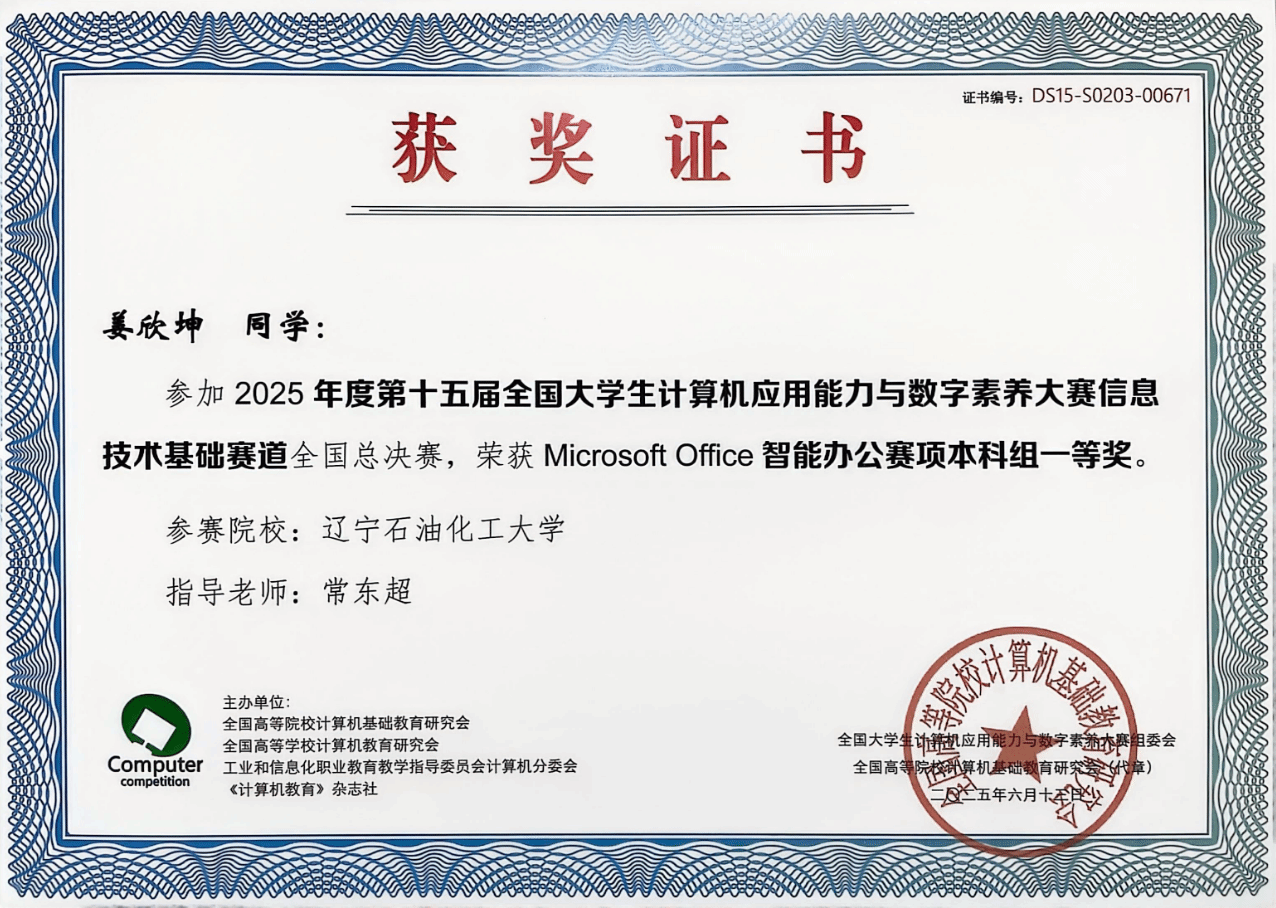 近日,由全国高等院校计算机基础教育研究会、全国高等学校计算机教育研究会、工业和信息化职业教育教学指导委员会计算机分委会、《计算机教育》杂志社共同主办,中央民族大学、首都经济贸易大学、北京金芥子国际教育咨询有限公司联合承办的第十五届全国大学生计算机应用能力与数字素养大赛的总决赛落下帷幕。我校学子通过人工智能与软件学院负责本赛事老师的精心组织参加了所有赛道相关赛项的角逐,在学校相关职能部门大力支持及全校相关指导老师认真辅导下,加之学生本人的不懈努力和认真备赛、参赛,2025年获奖数量及质量得到了大幅度提升。全校荣获个人赛项国家一等奖4项、二等奖3项、三等奖8项,个人赛项省级一等奖30项、二等奖61项、三等奖78项;荣获团体赛项国家一等奖2项、二等奖5项、三等奖5项。